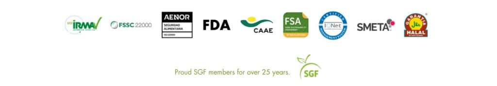 ¿Qué más nos diferencia? Nuestra capacidad para la diversificación de calidad y personalización de zumos concentrados de uva, para los distintos usos en la industria alimentaria, de bebidas, vinagrera, farmacéutica, cosmética, etc. Producimos mosto concentrado de uva blanca, tinta de alta intensidad colorante, mosto NFC, mosto rectificado, mosto con cualidades especiales, vírgenes, ecológicos, sin alérgenos, de distintos grados BRix… según lo requiera el cliente. Siempre bajo estrictos protocolos de seguridad y calidad alimentaria. Certificaciones internacionales, como FSSC 22000, AENOR, CAAE y FDA avalan la seguridad y ecología de nuestros procesos de producción.